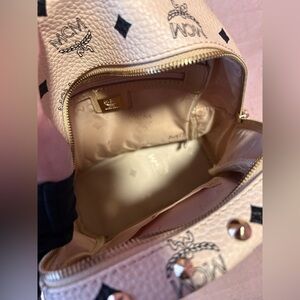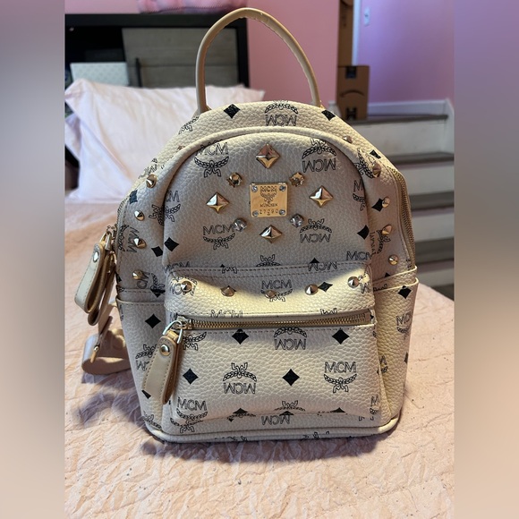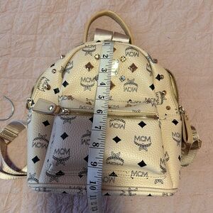 Preowned MCM mini backpack! In functional condition! Only flaw is the 2 missing rhinestones (seen in photo) . All zippers work. Straps and handle in good shape. Clean inside and out. No odors. Smoke free home. Ships next business day!