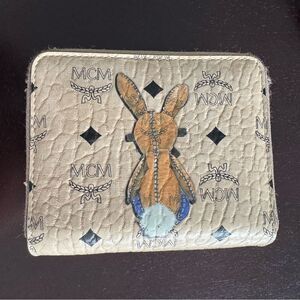 GUC MCM Mini Rabbit Zip Around Wallet in Visetos Beige