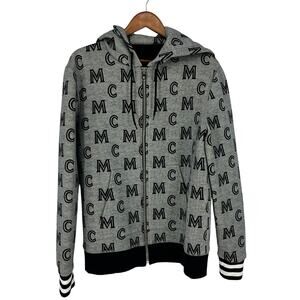 Level up your streetwear with this MCM Logo Zip Hoodie, featuring the brand’s iconic monogram pattern throughout. Crafted from a luxe viscose blend, this gray zip-up hoodie is soft, stretchy, and built for comfort. It features a full zip front, drawstring hood, hand pockets, and ribbed stripe cuffs that give it a sporty edge. Finished with subtle ribbed hem detailing and signature logo accents, it’s the perfect high-end layer for casual days or travel-ready looks. Premium feel and standout design from the heritage German fashion house known for its elevated urban style.