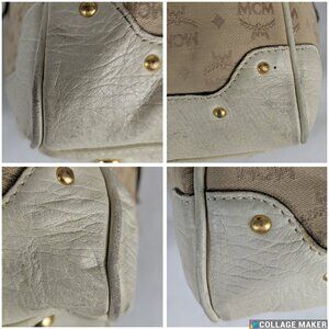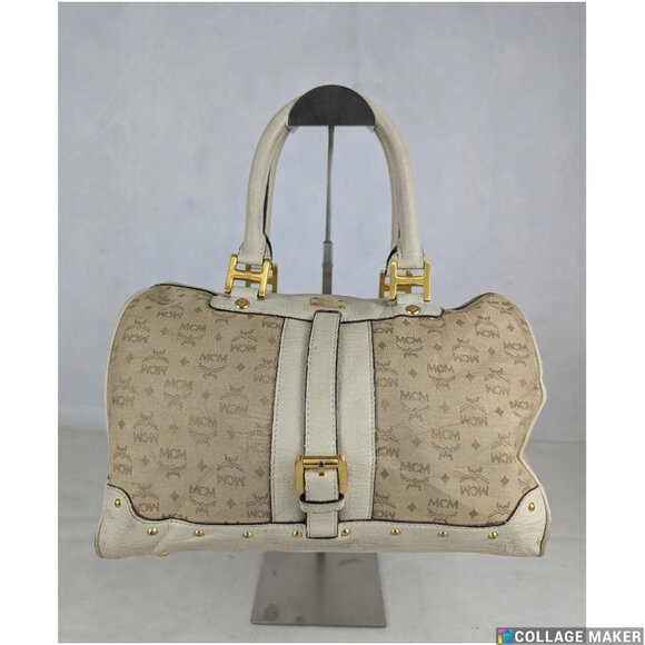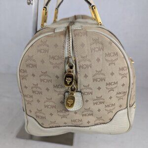 MCM Munchen Visetos Coated Canvas Bowler Monogram Beige Top Handle Charm BAG