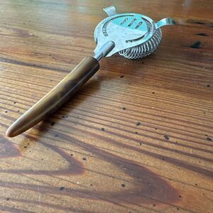 MCM Parker Gaines cocktail strainer with a lovely brown marbled Bakelite handle. Super cool, great condition and ready to serve up some tasty mid century inspired cocktails. Please see photos for details.