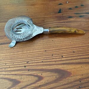 MCM Parker Gaines Stainless Cocktail Strainer w/ Marbled Bakelite Handle USA