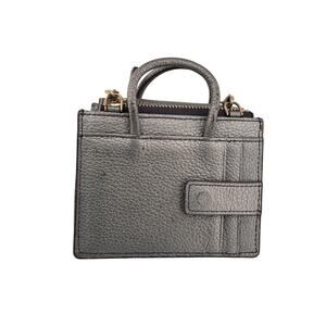 This chic and compact MCM mini wallet/card holder in metallic pewter pebbled leather combines luxury craftsmanship with everyday practicality. Featuring the signature MCM laurel logo in gold-tone hardware, it’s designed with top handles for a structured look and a secure zip closure to keep your essentials organized. Perfectly sized to hold cards, cash, and small accessories, this mini piece doubles as a fashion-forward micro bag or card wallet.
