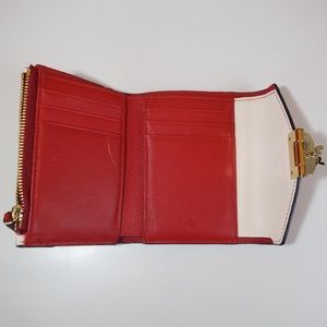 MCM Patricia Three Fold Brown & Red Visetos Leather Push Lock Wallet, Sz Medium