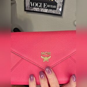 This MCM crossbody bag in a vibrant pink hue is crafted from premium leather, offering a sleek and minimalist design. Its adjustable strap ensures comfort and versatility, making it an ideal accessory for any occasion. comes with COA.
