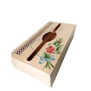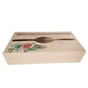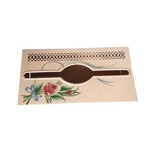 Lovely Vintage Pink Rose Floral Hand Painted Tole Metal Tissue Box