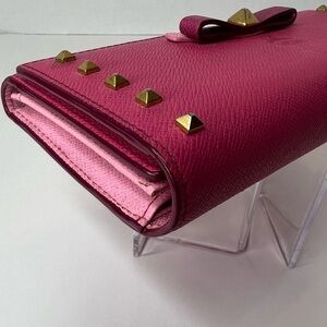 🩷MCM Pink/Gold Studded Bow Long/Continental Zip Around Wallet | PRELOVED!! EUC!