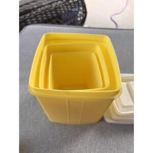 MCM Plastic Canister Set Mid Century Coffee Sugar Tea Yellow 3 Pc Nesting