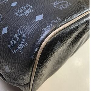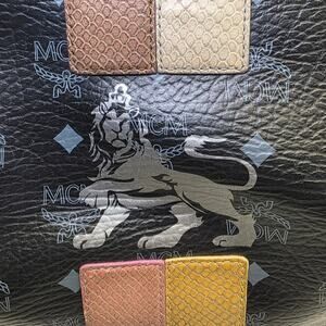 MCM Princess Lion Visetos Black Gold Large Tote Bag Shoulder Purse Munchen R0952