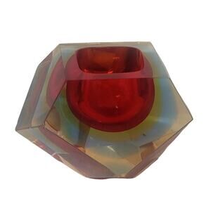 MCM RED MURANO SOMMERSO MANDRUZZATO GEOMETRIC FACETED GLASS CANDLE HOLDER AS IS