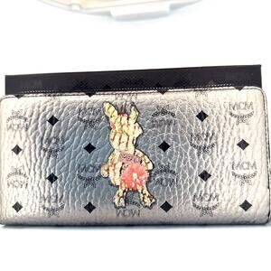 MCM Rabbit Visetos Wristlet Zip Wallet – Metallic Silver