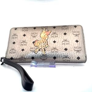 Add a touch of statement luxury to your collection with this MCM Rabbit Visetos Wristlet Zip Wallet in metallic silver.