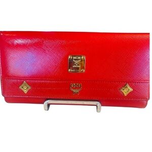 MCM Red w/Golden Hardware Long Trifold Wallet: M9376, EUC
