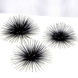 There are 3 Starbursts 1 large 2 small. Antiqued Silver metal with black center and hook on back.