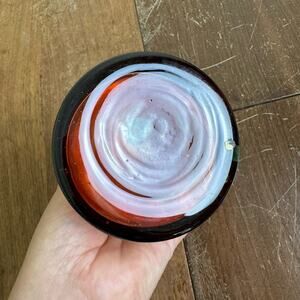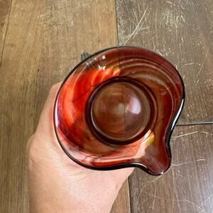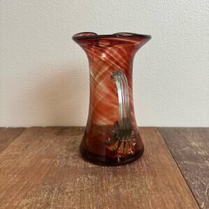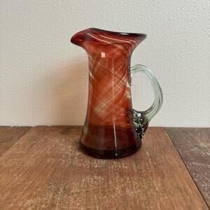 MCM Retro Hand Blown Swirl Art Glass Pitcher Applied Handle Burgundy Red Clear