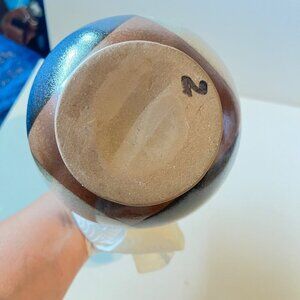 This vintage handcrafted ceramic vase features a striking geometric design, making it a stylish addition to your home decor.