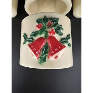 Description: Mid Century Modern - Vintage Holly & Bells Christmas Napkin Rings