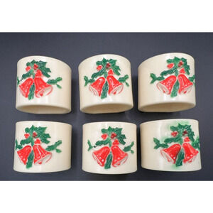 MCM Set of 7 Vintage Melamine Holly & Bells Christmas Napkin Rings SUPER WOW!