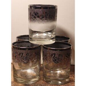 MCM Silver Fade Ombre Old Fashioned Glasses Set of 5 Textured Grapes & Leaves