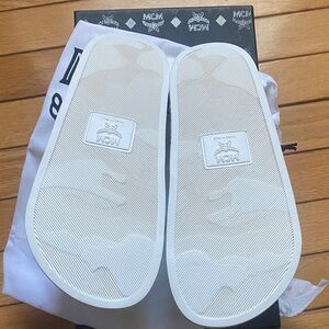 Bright neon yellow strap with MCM logo. Comfortable white base. Stylish and fun for anyone!