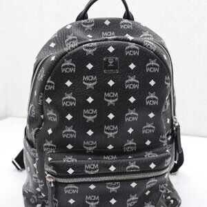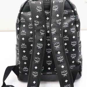 MCM Stark Backpack Visetos White Logo Medium - Black/White