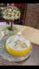 MCM Sunny Yellow Atomic Bowl & Lid w Sand Textured White/Yellow/Green Flowers