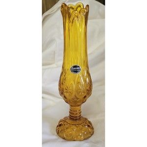MCM Swung Vase Moon Stars Amber Kanawha Glass 10.5” Vibrant Mid Century Rare