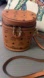Elegant MCM cylinder bag with iconic monogram. Features a tan color and sturdy zipper closure. Look at the photos for a description. It's missing the handle on the top and a hook on the side. Inside, it's a little dirty.