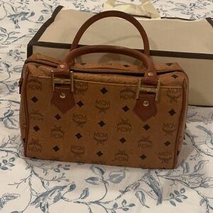 Stylish MCM bag with monogram design. Features dual handles and gold-tone accents. Perfect for everyday use. This is a pre-loved vintage bag in great condition has the rings for a Crossbody. No strap included please view pictures carefully before purchase. Note: this bag was purchased from @bagriculture. It has been previously authenticated.