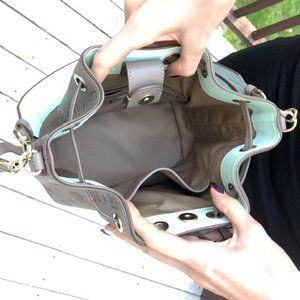 MCM Taupe Leather Essential Drawstring Shoulder Monogram Bag NWOT