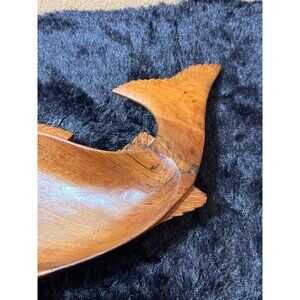 MCM Teak Carved Wooden Fish-Shaped Bowl Handcrafted