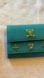 Super cute teal MCM wallet has charms still attached to the chain