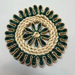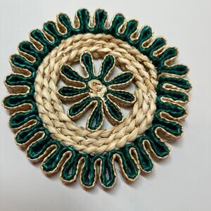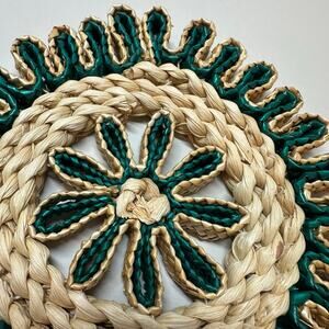 MCM Trivet Woven Wicker Rattan Green Boho MCM Hot Pad Wall Decor Natural Fiber