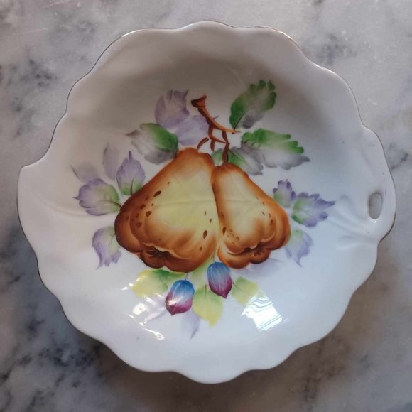 MCM UCAGCO Japan Hand Painted Pears, Small Plate, Unusual Rim, Vibrant Colors