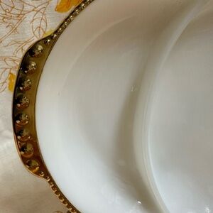 MCM Vanity Tray Trinkets FireKing Ovenware Gold Rimmed Divided Serving Dish-VGC