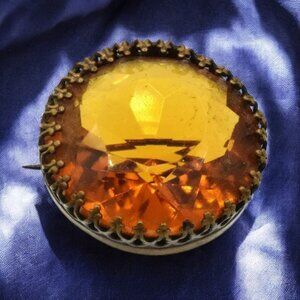 This crystal brooch has a beautiful deep amber color.