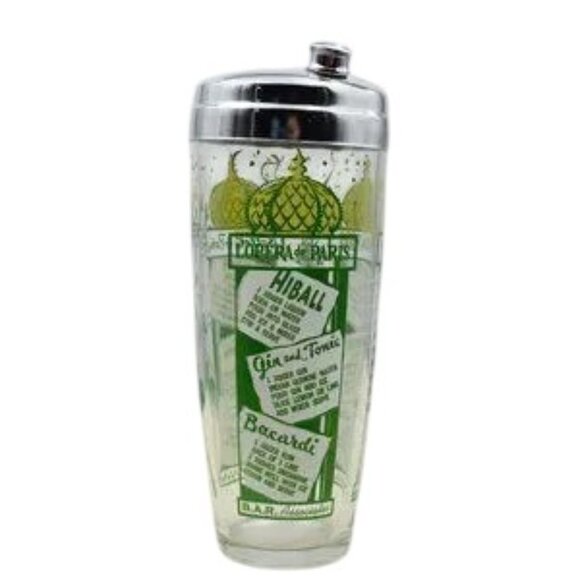 MCM Vintage B.A.R Associates Graphic Cocktail Shaker with Drink Recipes Barware