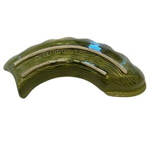 MCM Vintage Ceramic Bowl Tray Textured olive green with turquoise and flecks of red. Use for jewelry, appetizers, display. So pretty. Like a peacock feather. Unique shape. 1 2/3" depth, 4" W, 11" L. No chips perfect condition. Made in USA. #mcm #vintagedecor #peacock