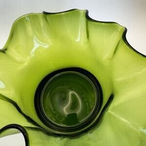 MCM Vintage Emerald Green Hand Blown Controlled Bubble Glass Ruffled Edge Bowl