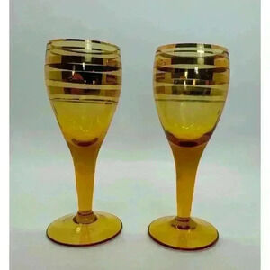 MCM Vintage Gold Banded Cordial Glasses Set of Two Excellent Condition