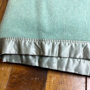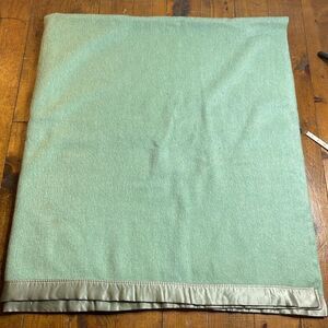 MCM Vintage Green Wool Blanket with Satin Trim Size