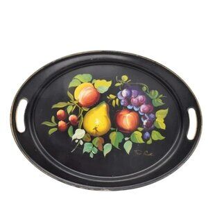 MCM Vintage Hand Painted Toleware Serving Tray Signed Fred Austin