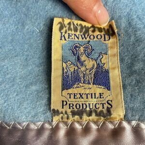 MCM Vintage Kenwood Textile Products Blue Wool Satin Trim Blanket 68” x 88” twin