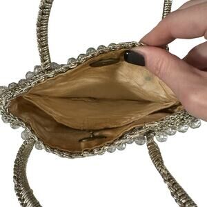 MCM Vintage Lefcord Full Beaded Purse Clutch Small Clear and Gold 50s