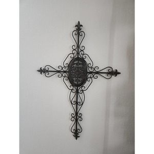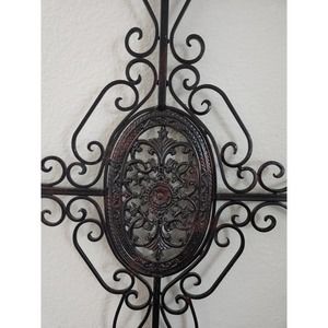 MCM Vintage Scroll work and Wrought Iron Cross with Center Medallion 39"…