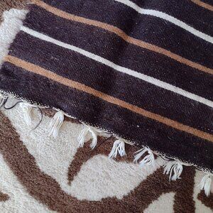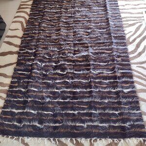🤎🤍🤎Excellent pristine condition, never used on floor, beautiful vintage Turkish kilim wool reversible to shaggy mohair blanket or rug. Measuring 51" x 80" (4'x6') rectangular shape. This handwoven rug features a stunning design that is sure to compliment any room in your home. Made of 100% wool, with a thickness of 0.25/0.45 inches, substantial weight and has been lovingly crafted using traditional Turkish techniques to create an authentic style. This original piece is from the 1970s. The rug has been expertly woven without the use of any dyes, making it a unique and one-of-a-kind. SMOKE FREE HOME. (Last 2 pictures are ways to style this rug on the back of the couch like a throw. As shown in Ann Marie Barton AMB design and Jenni Kayne home🤎🤍) Weight and thickness is substantial, the natural colors are rich and not faded. GORGEOUS 😍TAGS: MCM, CB2 , JENNI KAYNE, WEST ELM, Norwegian, COPENHAGEN, ANTHROPOLOGIE, NATURAL HOME, Scandinavian, DWR, THE CITIZENRY, Nordic style, Crate and Barrel