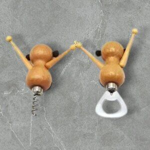 MCM Vintage Wood Monkey Bottle Opener & Corkscrew Bar Accessories