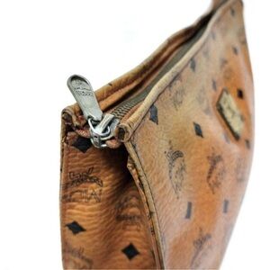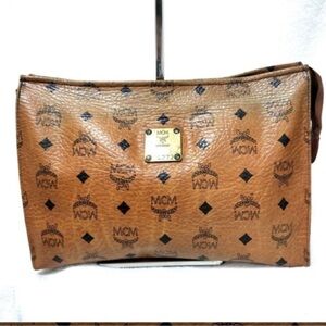 Stylish MCM clutch with iconic logo pattern. Signs of used o. Clutch so check photos and be satisfied before purchase, color fading and other signs of used on clutch,check photos for condition and be satisfied before purchase