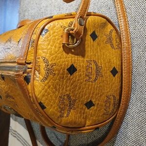 Authentic MCM Visetos cylindrical shoulder bag crafted in brown coated PVC leather with the signature monogram print. Features a structured silhouette, top zip closure, and an adjustable leather strap for versatile wear. This little MCM crossbody bag is authentic and is in excellent excellent condition. Please go check out the pictures to see for yourself. If you have any questions please let me know thanks