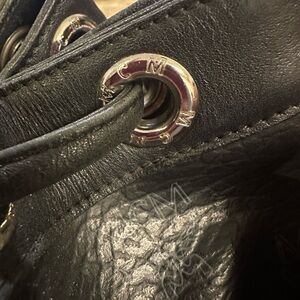 MCM Visetos Black Leather Bucket Bag, Adjustable Crossbody Strap